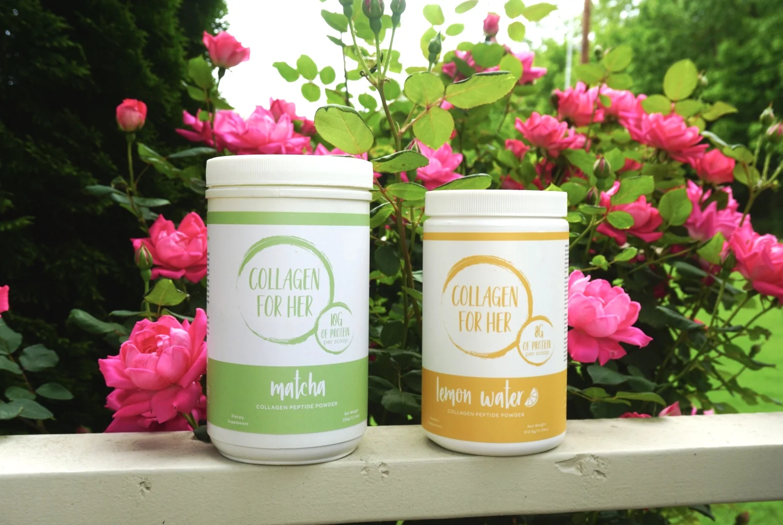 The matcha collagen is a combo of Collagen for Her’s original collagen powder plus matcha powder, so you get the benefits of both the collagen and the matcha.